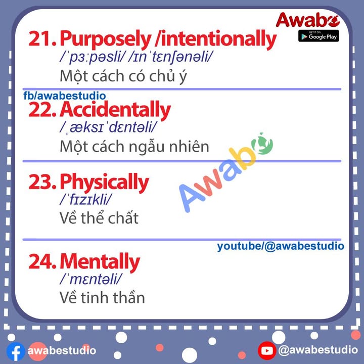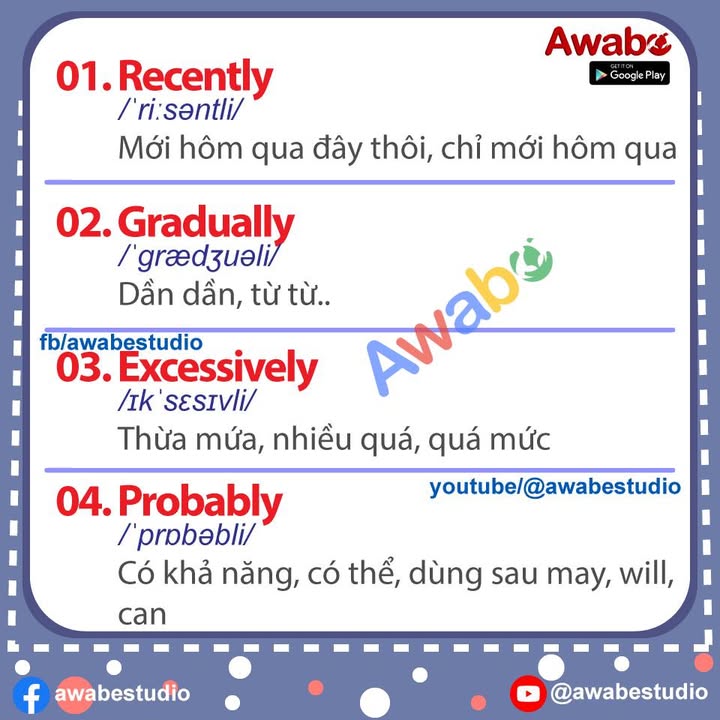 60 TRẠNG TỪ ĐUÔI ‘LY’ KHÔNG THỂ BỎ QUA